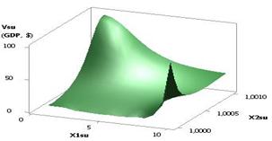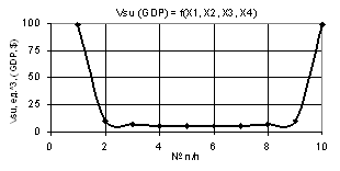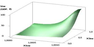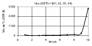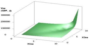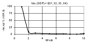 from –0.9 to –0.000009, i.e. by a factor of 100000 times, and the values of the Vsu (GDP) decrease only by a factor of 3.48 times. In other words, it is safe
