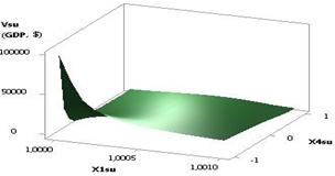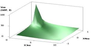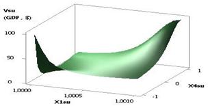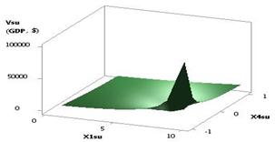Fig. 1. Vsu (GDP) = f(Õ1, Õ2, Õ3, Õ4) Õ1 = Õ2 = Õ3 = 1, Õ4 = 0.99…–0.99 |