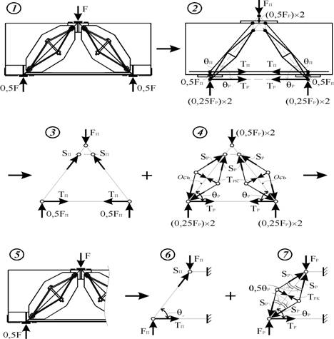 расчетных моделей КСМ неповрежденных балок. Они состоят из наклонных стержней,