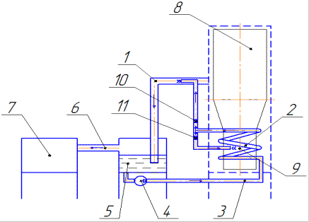 установлен теплообменник (рис.1), через который прокачивается вода из конденсатора-очистителя,
