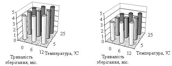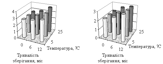 культур в залежності від температури та тривалості зберігання: