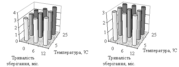 зберігання наведено у табл. 1 – 4.