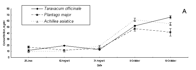 species are Achillea asiatica Serg., Taraxacum officinale Wigg., Plantago major L. These species are