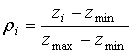 where  – some biological parameter or characteristic of the environment; ,  – accordingly the maximum and minimum value for this parameter in the group of all the studied order (suborder).