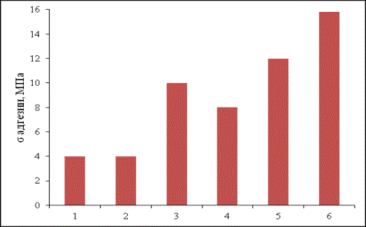 не влияло (рис.1) на адгезионную прочность. Видимо, при такой концентрации (2,5