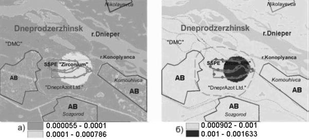 factor for an unacceptable risk level on the territory of industrious site SSPE “Zirconium” is joint effect of background pollution and