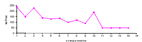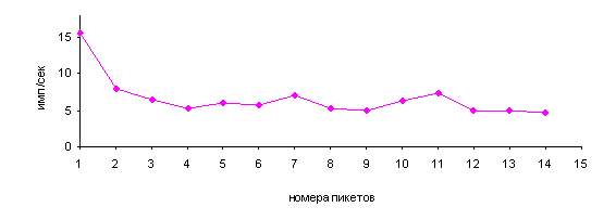 Рис 1. Распределение интенсивности альфа - излучения на пикетах профиля