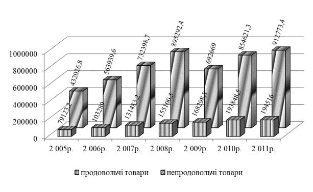 товарообігу підприємств оптової торгівлі підприємств у 2005-2011 роках [3]. Обсяг