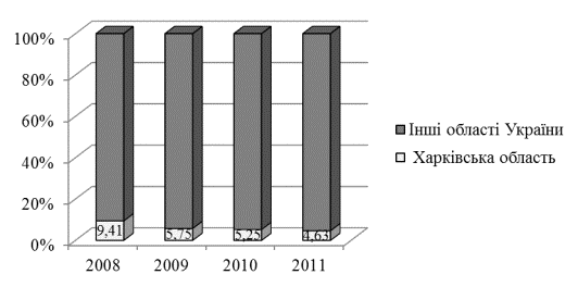 ситуації в інших областях. Так, в 2009 р. в усіх аналізованих областях, у тому
