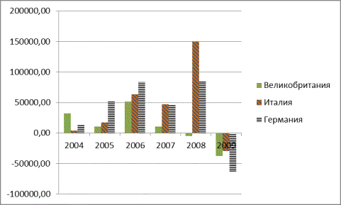 Германии (2005, 2006, 2008 года) и Италии (график 2).