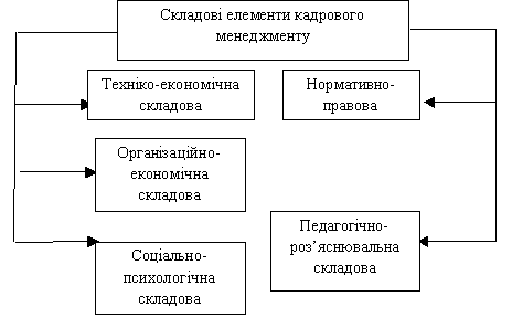 кадрового менеджменту включає в себе основні елементи: мета та функції управління, принципи,