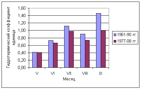 показывает, что значения гидротермического коэффициента в 1977-2008 гг. по