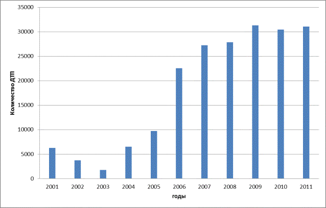 происшествий кратно возросло в сравнении с 2001-2005 гг. (рис. 1).