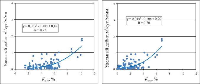породах кристаллического фундамента и проницаемости (Кпр),