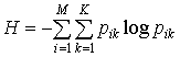 вероятности pik по формуле Шеннона определяется энтропия, приходящаяся на одно отношение rk