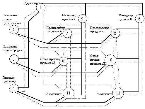 отражает наличие в системе подразделения; ребро – связь между двумя