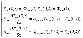 Для адаптации математической модели использовали интервальный метод для определения параметра cсм. Для этого варьировали cсм и рассчитывали температуру