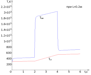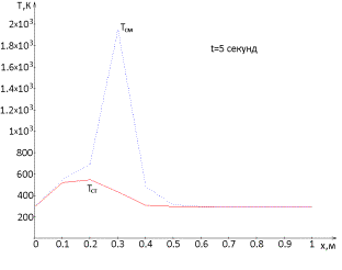 результаты расчета температур сред (стенки, смеси) приведены на рисунках 1,2.