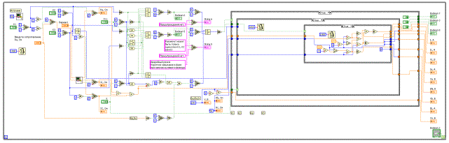 К сожалению, возможности интеграции VI с реальными физическими объектами на данный момент нет, поэтому нами была подготовлена математическая модель эксперимента и разработан сценарий работы виртуального прибора (ВП).