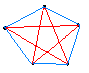 Рассматривается полный граф с пятью вершинами. Пусть синие ребра соответствуют