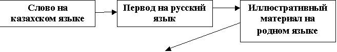 при объяснении слов с отвлечённым значением, которые трудно раскрыть средствами русского языка. Пользуясь русско-казахским словарем, ученики переводят слова на казахский язык.