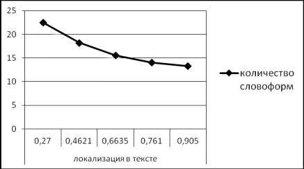 15,54, то в точке 0,301 этот параметр соответствует 17,11 словоформы. В тексте