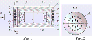 ПГ містить корпус 1 з циліндричною, діаметром D, порожниною 2, яка частково заповнена робочою рідиною 3. В порожнині 2 корпусу 1, розташований поплавковий підвіс 4 з гіромотором 5, який встановлюється на опорах 6 і має датчик кута 7 і датчик моментів 8 для визначення курсу. На зовнішній поверхні 9 корпуса 1 розміщений тепловий кожух 10 з кришками 11, які дискретно-неперервно перфоровані наскрізними отворами 12 однакової площі поперечного перетину і затягнуті із внутрішньої сторони 13 (зі сторони торців корпуса 1) сіткою 14, яка відокремлює кінці отворів 12 від повітряної порожнини 15 між корпусом і внутрішньою поверхнею 13 кришок теплового кожуха.