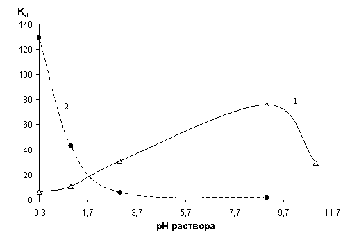 интервале рН от 2 до 10 с максимальным Кр = 75,9 см3/г (рН