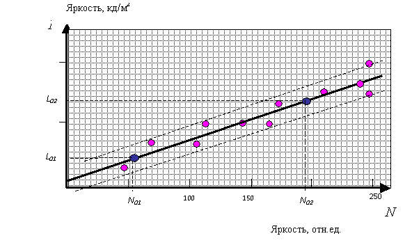 пересчет градаций яркости (отн.ед.) в единицы яркости СИ (кд/м2) по