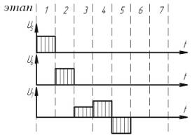 Рис. 2 Циклограмма напряжений за один прыжок робота