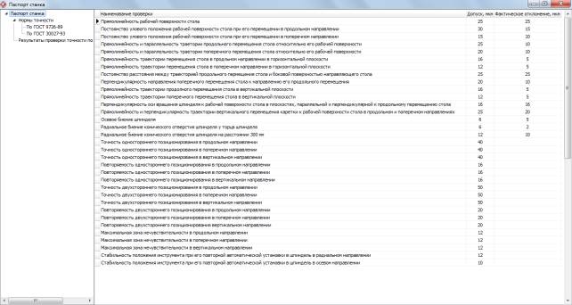 систему данными, содержащими результаты испытаний на геометрическую точность