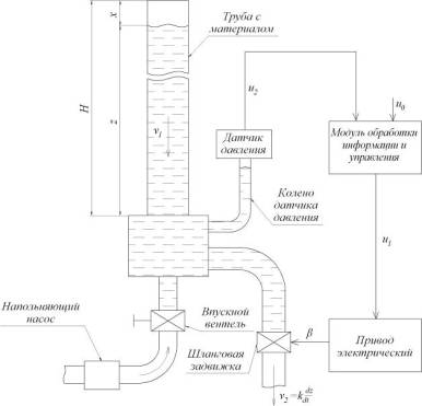 высоте материала покрытия в трубе поступает с датчиков уровня на модуль