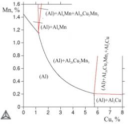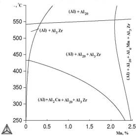 по строению диаграммы Al–Cu–Mn–Zr, распределение фазовых областей в алюминиевом углу