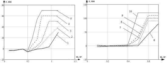 – payload is 0.15 kg, 2 – 0.25 kg, 3 – 0.45 kg, 4 – 0.55 kg, 5 – 0.65 kg, 6 –