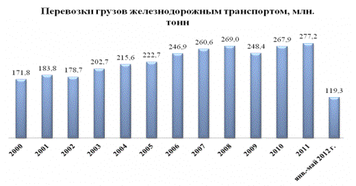 1). Так, по итогам 2011 года объем грузовых перевозок в Казахстане составил