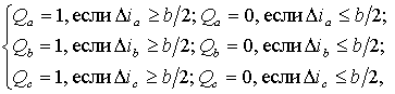 неоднозначности b релейных элементов РЭ1 – РЭ3 (рис. 1). Сумматоры S1 – S3 вычисляют разницу Dia, Dib, Dic между заданными и фактическими значениями мгновенных