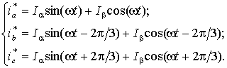 «слежение» реальных токов ia, ib, ic за их заданными значениями