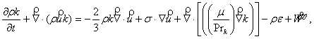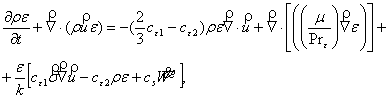 движения для турбулентной кинетической энергии k и скорости ее диссипации ε: