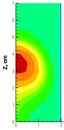 и радиусом 2 см. Начальная температура в камере сгорания равна 800 К. Количество контрольных ячеек - 600. Температура
