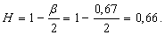 размерность равна D=2-H=2-0,66=1,34. Параметры самоподобия H и D представляют