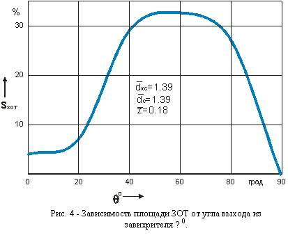сечении площади ЗОТ создаваемые завихрителями с углами выхода потока равными 300,