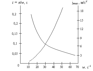 график зависимости времени полупериода колебания Т/2 и ускорения jmax от угловой скорости