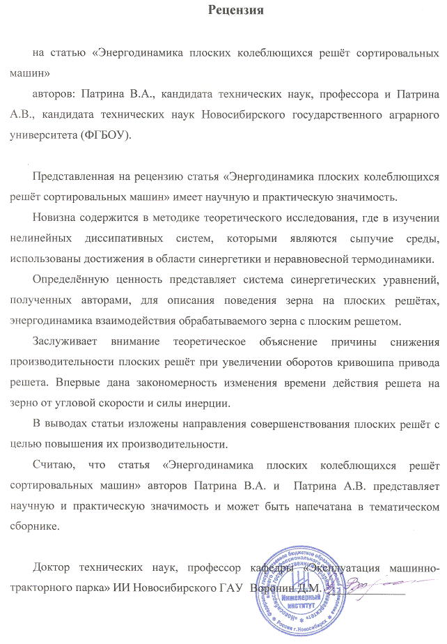 Ключевые слова: плоское решето, зерновая среда, энергодинамика системы «решето –