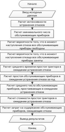 Блок-схема программы для расчета оптимального числа обслуживающих приборов