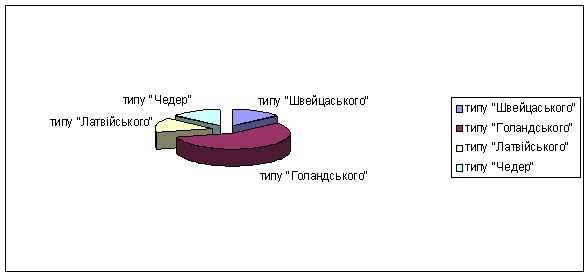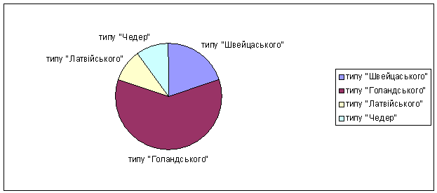 відмітити переважаючу частку сирів типу «Голандського», для якого характерні такі ознаки: невеликі розміри, короткий процес дозрівання. Умови зберігання
