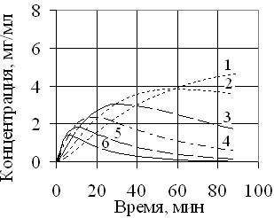 времени пребывания частиц и увеличение максимальной концентрации моносахаридов.