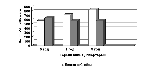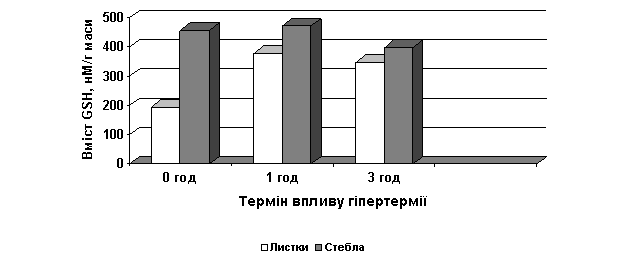 листках рослин процесів накопичення GSH за тривалої дії гіпертермії. У стеблах рослин також виявлено