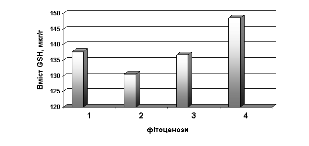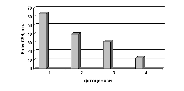 фітоценозах міста. Більш суттєве зниження вмісту GSH у