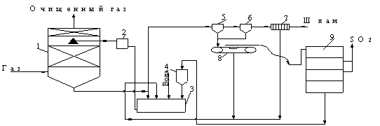 на рисунке 1. Продукты сгорания, очищенные от золы, поступают в абсорбер