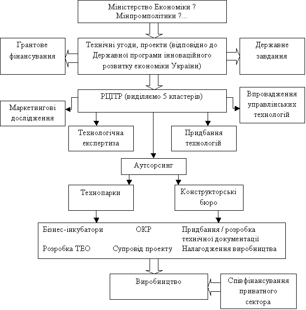 інноваційної інфраструктури. 3. Трансферт технологій. 4. Інжинирінг (контроль